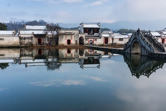 你可以清晨去村邊的月沼漫步,晨光下,看著纖柔的荷葉和碧波中黑白分明的建筑的倒影,足以讓你把這個(gè)春節(jié)過(guò)成一首雋永的詩(shī)歌。